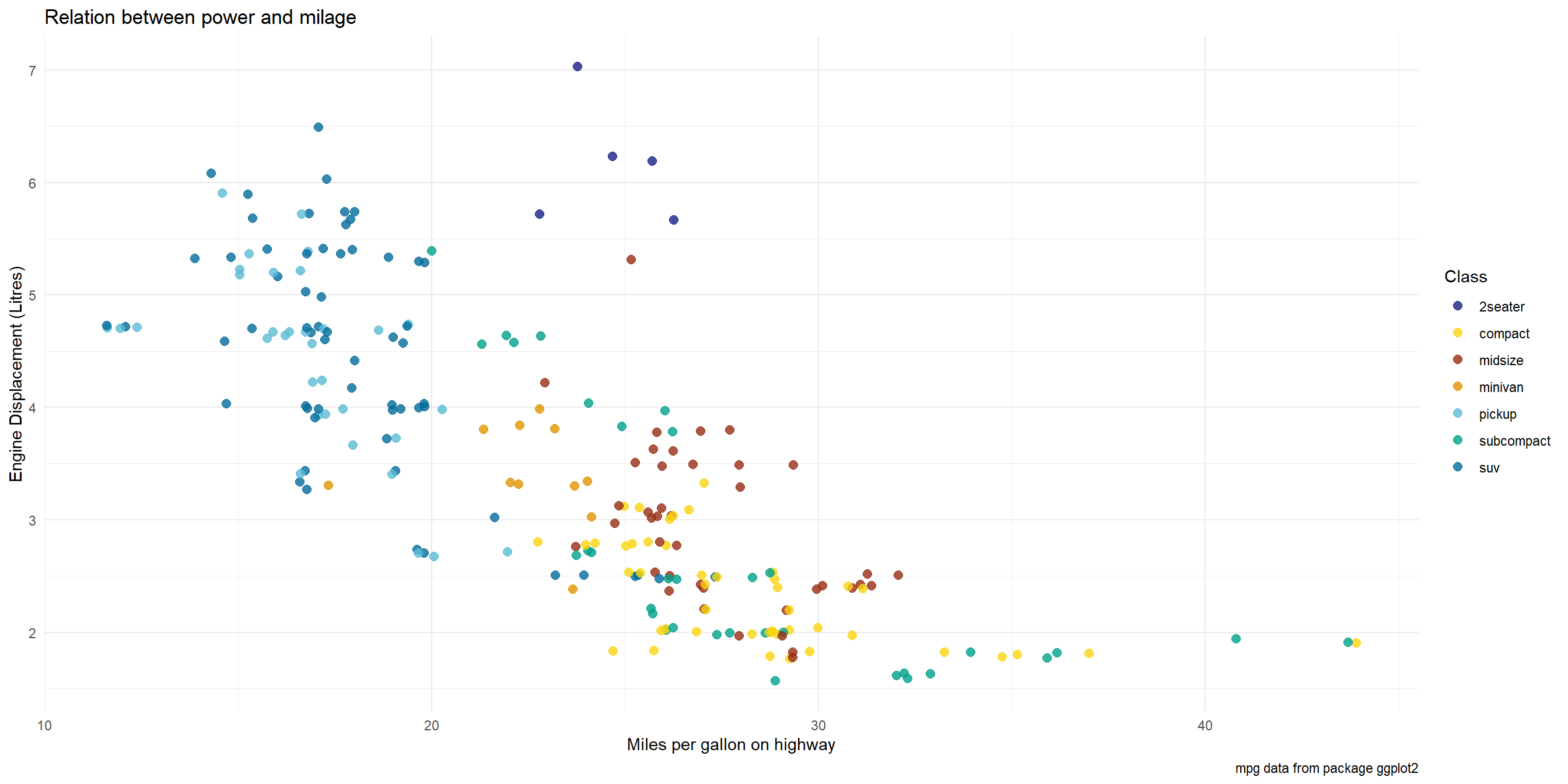 | 2 Continious Variable | geom_point(), geom_smooth() |