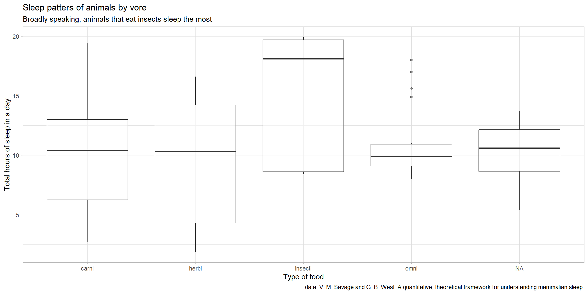 | 1 Continiouos,1 Discrete | geom_col(), geom_boxplot() |