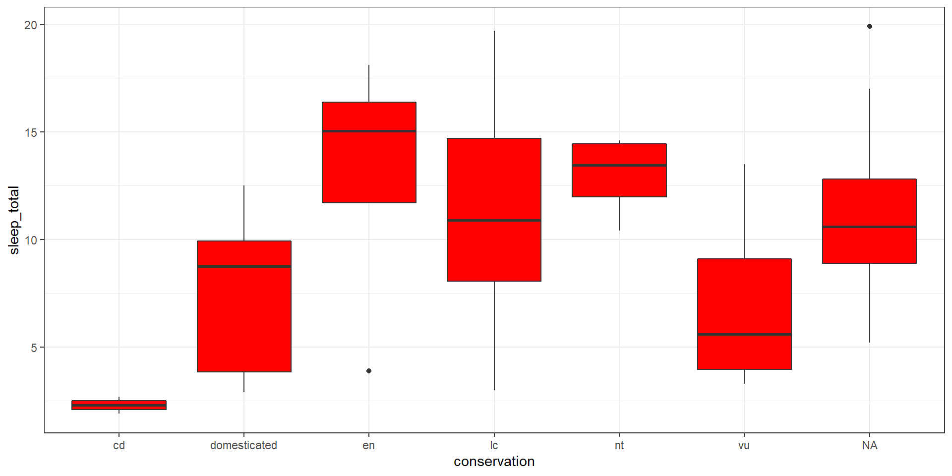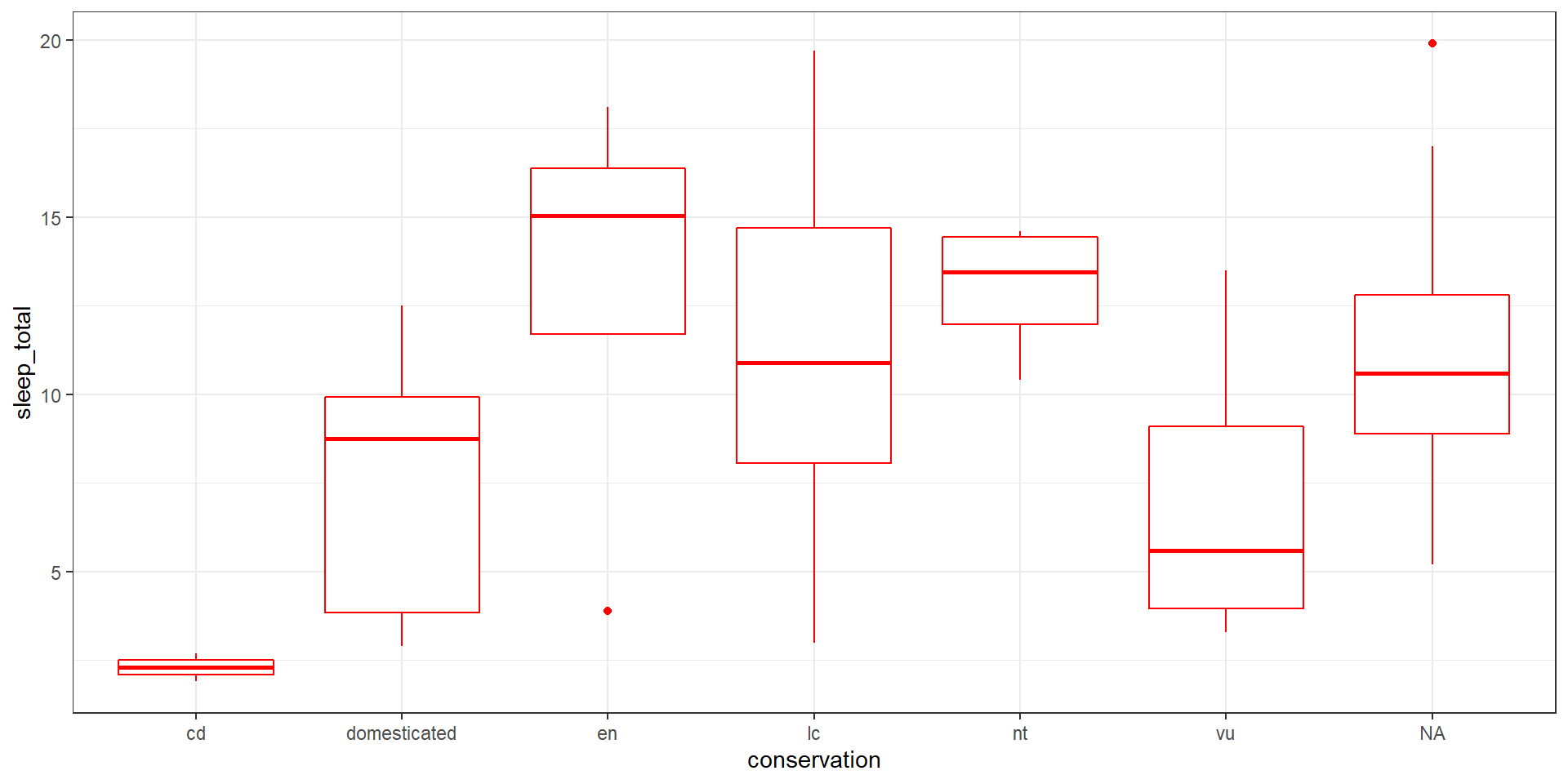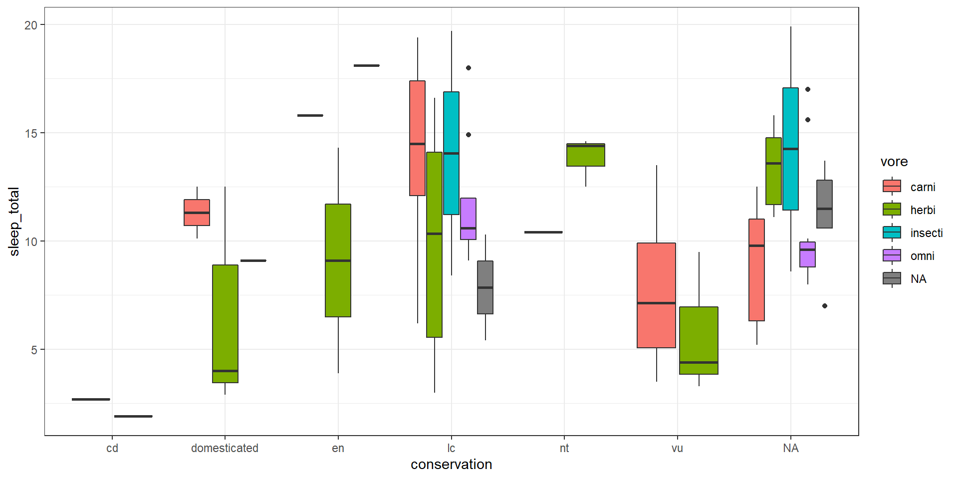 | sleep_total | conservation | name | genus | vore | order | sleep_rem | sleep_cycle | awake | brainwt | bodywt |