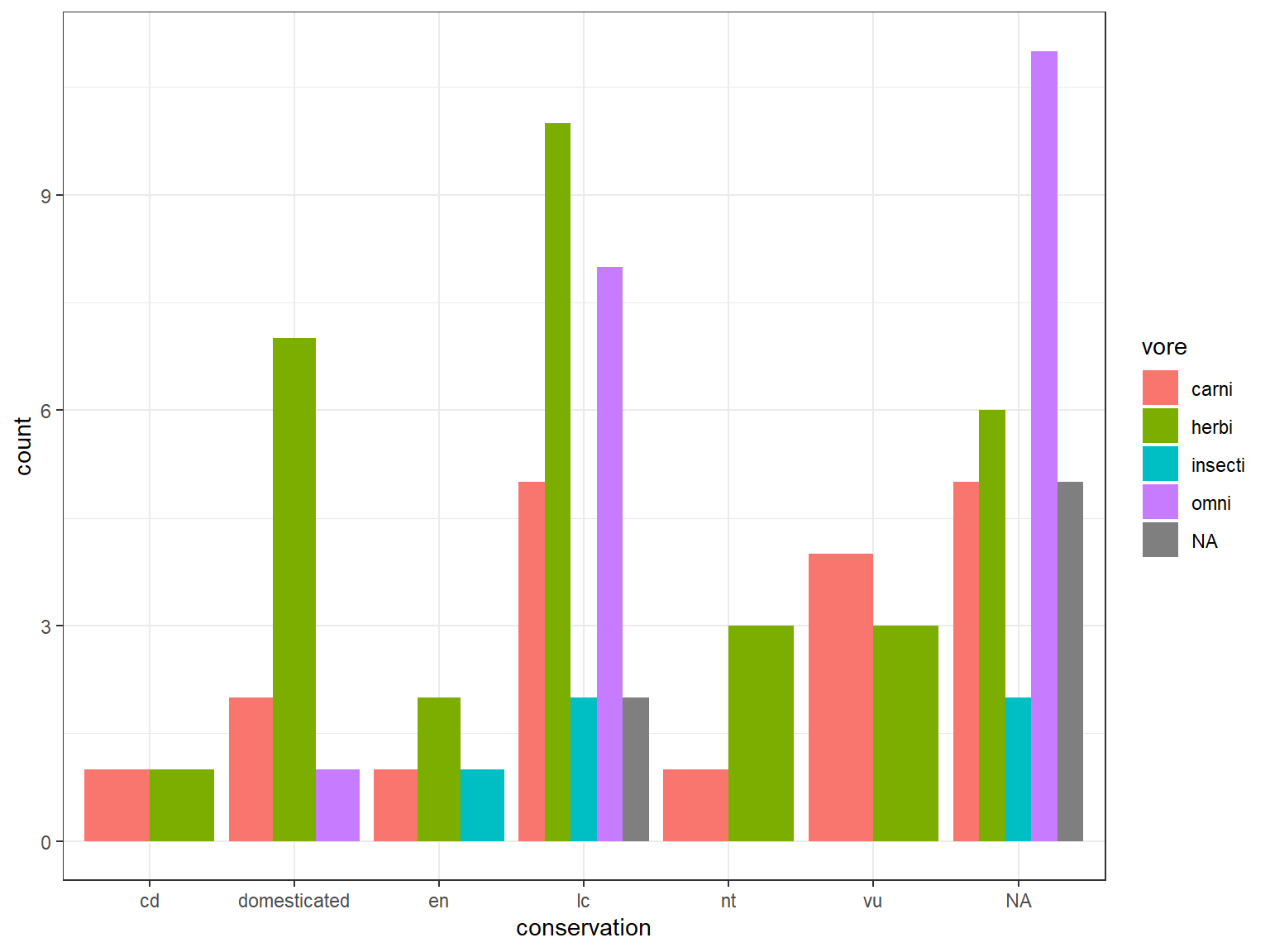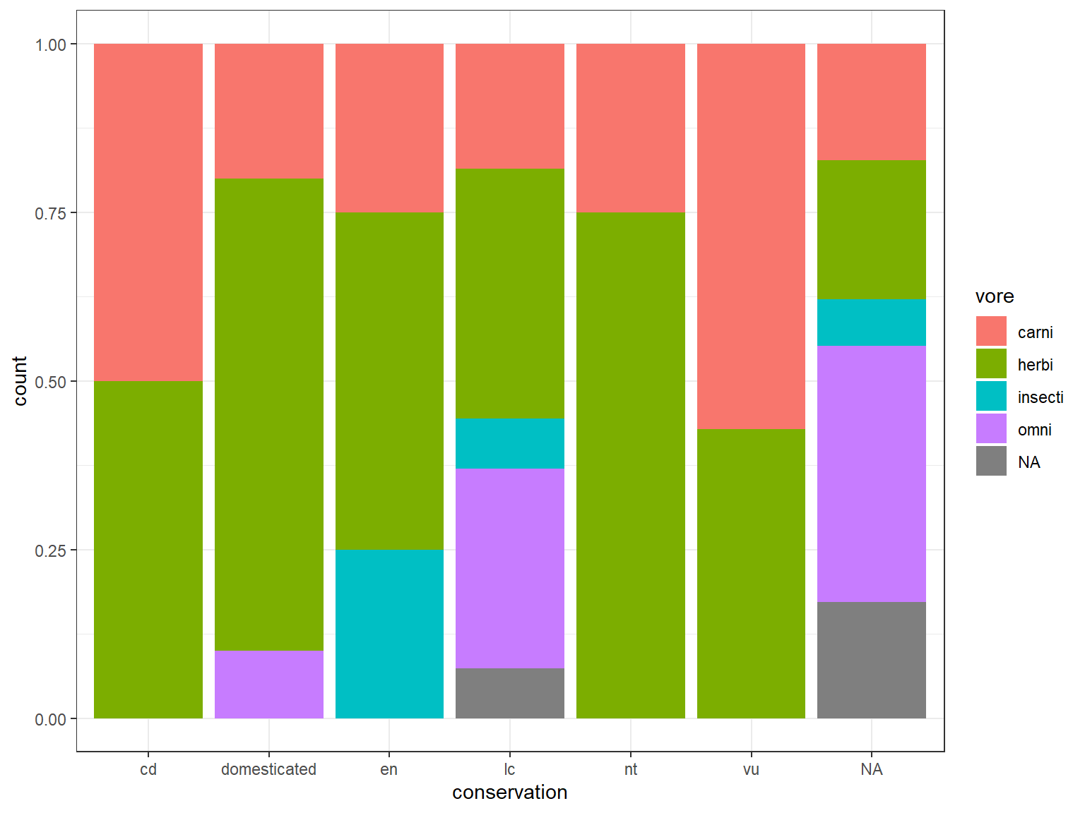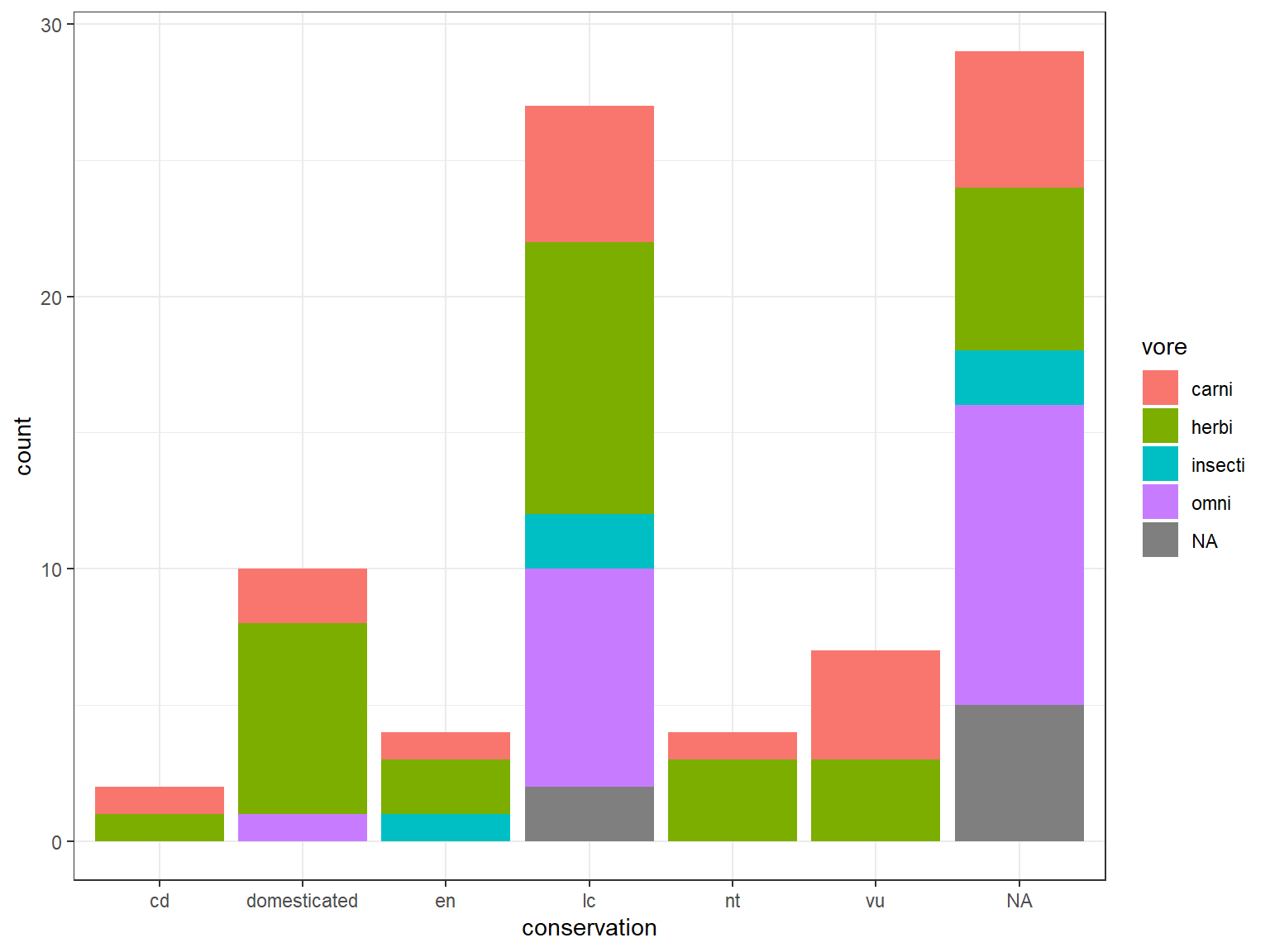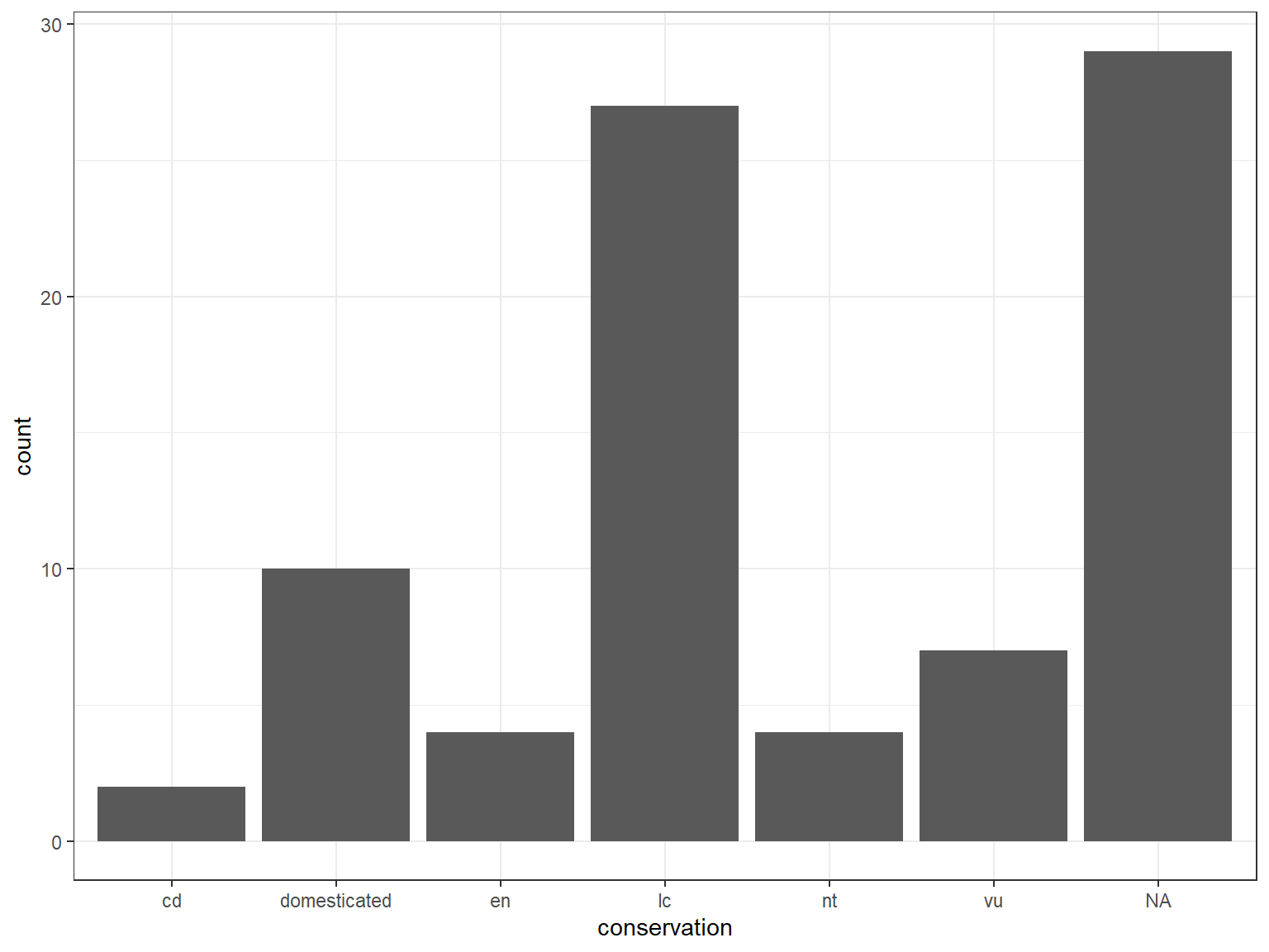 | sleep_total | conservation | name | genus | vore | order | sleep_rem | sleep_cycle | awake | brainwt | bodywt |