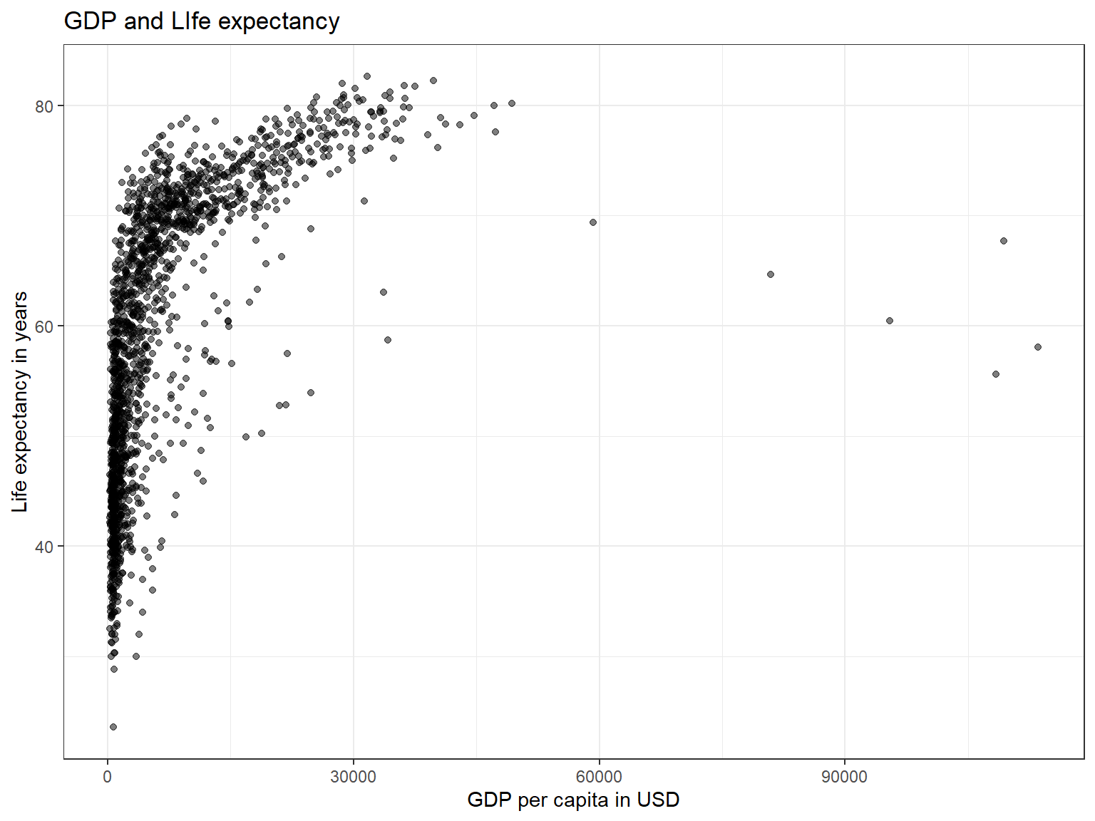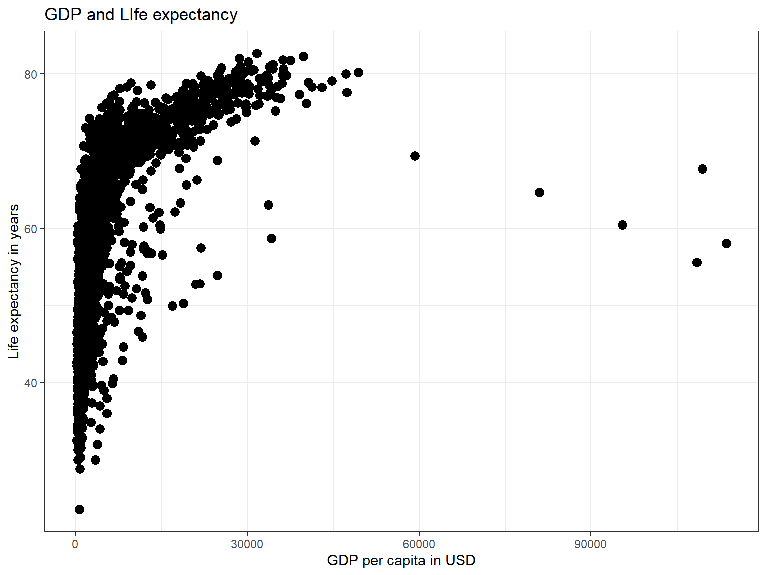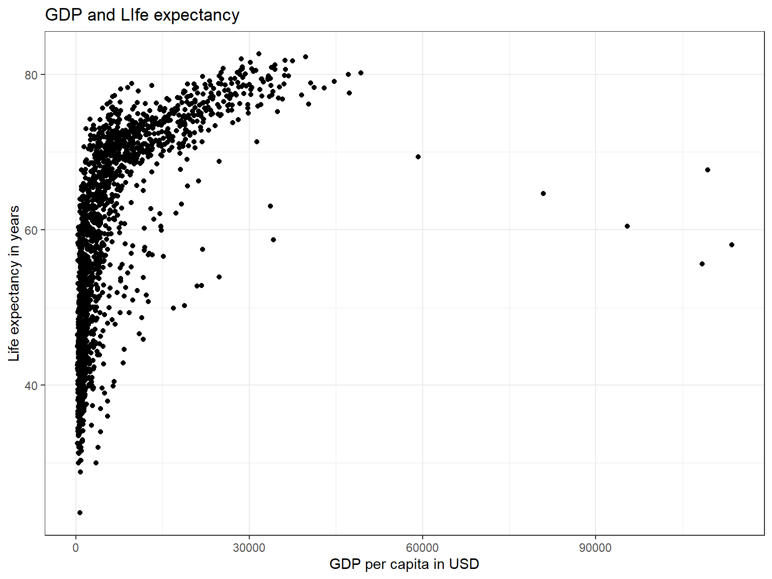 Use the data gapminder and create a point/scatter chart using variables gdpPercap and lifeExp